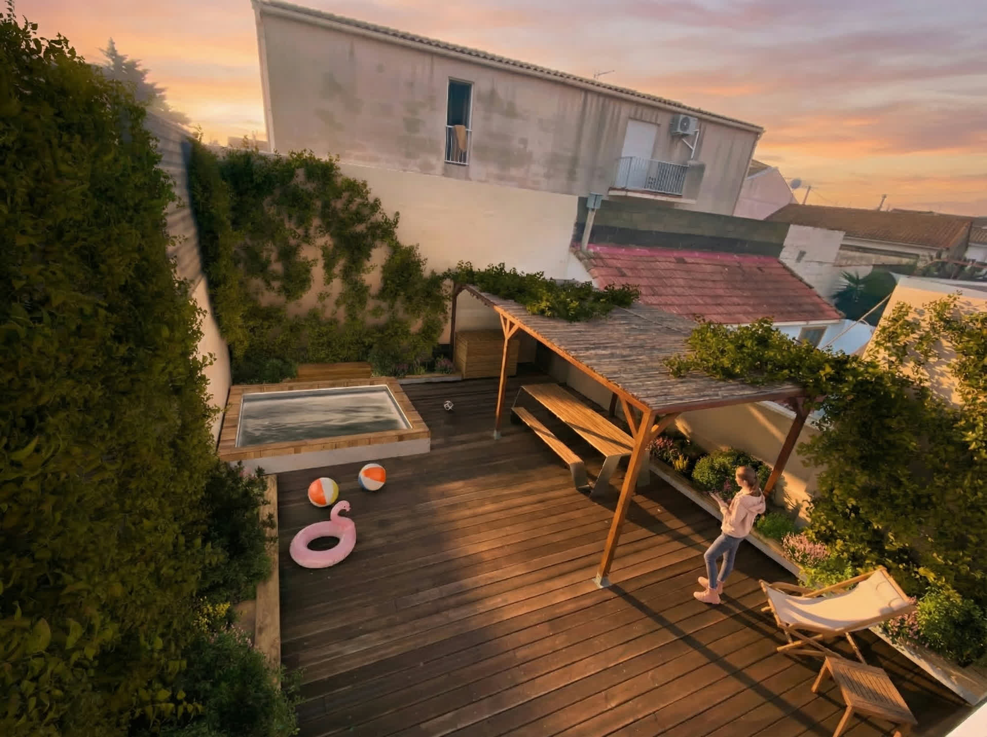 Au-delà, il était essentiel pour nous de travailler la végétalisation de l’espace qui permettra d’améliorer le confort thermique extérieur du bien tout en rendant plus agréable la vie en centre-ville à laquelle nous sommes attachés. Mon petit espace extérieur de 72m² est aujourd’hui sous-exploité et l’ambition de ce projet est de le transformer en lieu de vie agréable et apaisant. Narbonnais dans l’âme, je me projette sur le long terme dans cette maison familiale. La proximité immédiate de l’école de nos filles et de nos activités professionnelles favorise une organisation du quotidien simple et cohérente.